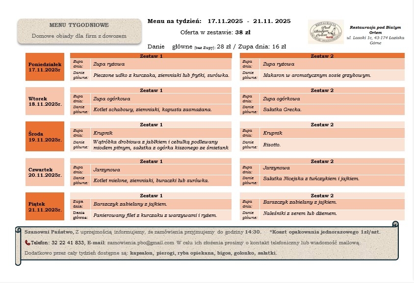 MENU TYGODNIOWE - Domowe obiady dla firm z dowozem