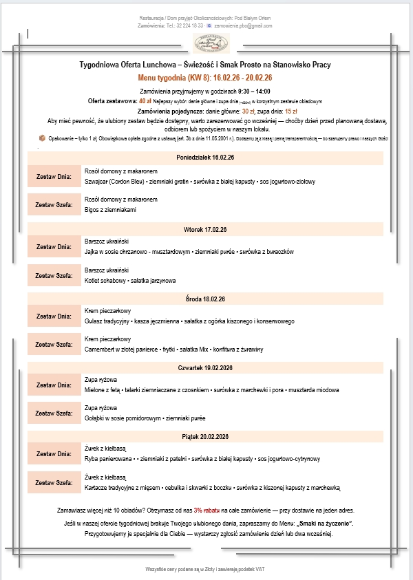 Dla firm i większych zamówień: Powyżej 10 obiadów – 3% rabatu