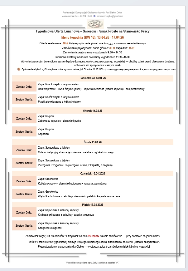 Dla firm i większych zamówień: Powyżej 10 obiadów – 3% rabatu