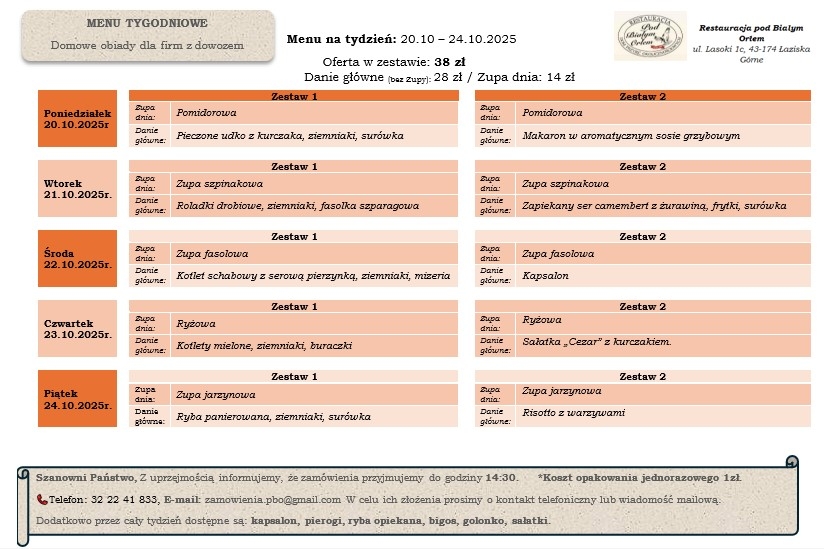 MENU TYGODNIOWE - Domowe obiady dla firm z dowozem