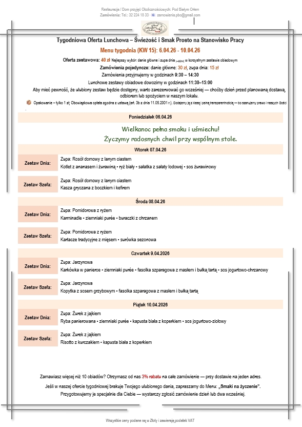 Zamówienia przyjmujemy w godzinach 9:30–14:30.