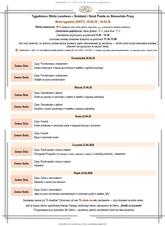 Dla firm i większych zamówień: Powyżej 10 obiadów – 3% rabatu