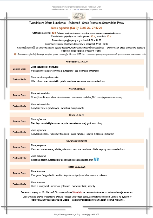 Dla firm i większych zamówień: Powyżej 10 obiadów – 3% rabatu